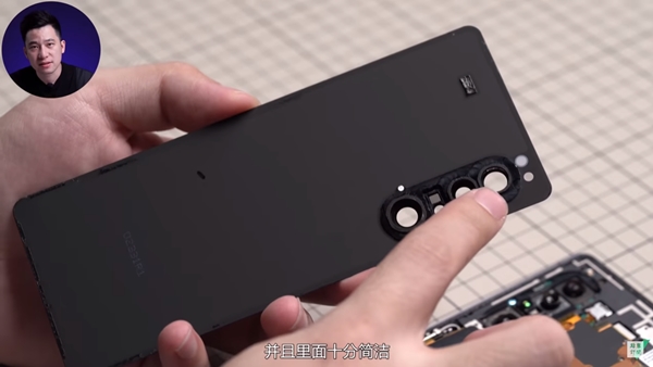 ฝาหลังของ Sony Xperia 1 II มีความบางเพียง 0.6 มม. เท่านั้น และยังมียางหุ้มบริเวณชุดกล้องเพื่อป้องกันโมดูลกล้องที่อยู่ด้านในด้วย