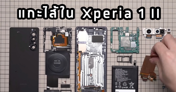 ล่าสุด XYZONE ยูทูปเบอร์รายหนึ่ง ได้ออกมาลองแกะไส้ในของ Xperia 1 II เพื่อดูชิ้นส่วน และงานประกอบภายในเป็นที่เรียบร้อยแล้ว โดยวิธีการแกะฝาหลังก็ทำได้อย่างง่ายดาย เพียงแค่ใช้ตัวดูดสุญญากาศดึงฝาหลัง พร้อมกับใช้แผ่นพลาสติกแข็งในการแซะกาวที่อยู่รอบๆ และไม่จำเป็นต้องระวังสายแพรที่เชื่อมต่อระหว่างฝาหลังกับเมนบอร์ด เนื่องจาก Sony มีการซ่อนสายแพรไว้ด้านในอย่างเป็นระเบียบ
