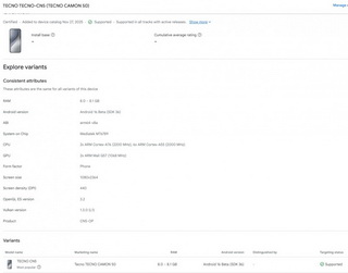 ภาพและสเปก Tecno Camon 50 และ Tecno Camon 50 Pro หลุดผ่าน Google Play Console