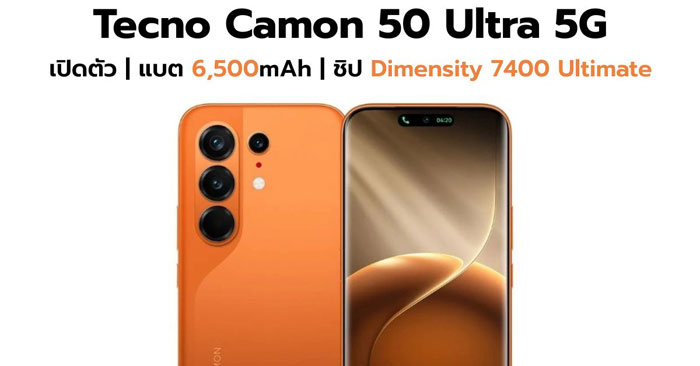 เปิดตัว Tecno Camon 50 Ultra 5G ชูไฮไลต์แบต 6,500mAh พร้อมชิป Dimensity 7400 Ultimate