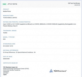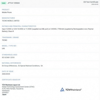 Tecno เคยนำ Tecno Pova 8 ไปจัดแสดงในงาน MWC ที่บาร์เซโลนาเมื่อต้นเดือนมีนาคม แต่สมาร์ตโฟนรุ่นดังกล่าวยังไม่ได้เปิดตัวอย่างเป็นทางการ อย่างไรก็ตาม ล่าสุดมีการพบข้อมูลของรุ่นนี้บนฐานข้อมูล TUV ซึ่งเผยให้ทราบว่า ตัวเครื่องจะมาพร้อมแบตเตอรี่ความจุ 7,750mAh ซึ่งมากกว่ารุ่นก่อนหน้าที่ให้มา 6,000mAh อย่างชัดเจน