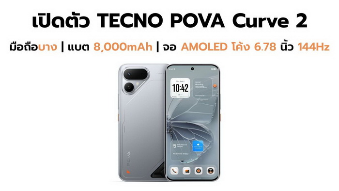 TECNO POVA Curve 2 เปิดตัวในอินเดีย แบต 8,000mAh จอ AMOLED โค้ง 1.5K 144Hz บาง 7.42 มม.