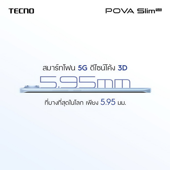 เปิดตัวไทย! TECNO POVA Slim 5G สมาร์ตโฟน 3D Curved บาง 5.95 มม. แบต 5,160mAh ชาร์จ 45W ราคา 8,999 บาท