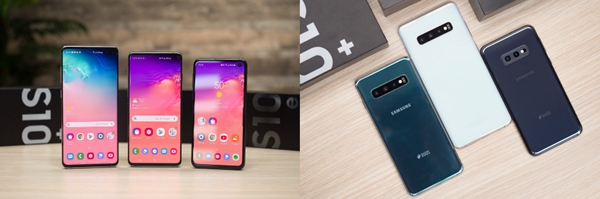 ในปี 2019 เป็นครั้งแรกที่ Samsung เปิดตัวเรือธง S Series ครั้งเดียวให้เห็นถึงสามรุ่น โดยวางรุ่น S10e เป็นรุ่นเริ่มต้นราคาประหยัด โดยทั้งสามรุ่นมาพร้อมกับดีไซน์ใหม่ด้วยหน้าจอแสดงผลที่บางเฉียบยิ่งกว่าเดิม ทำให้จำเป็นต้องมีการเจาะรูบนหน้าจอเพื่อติดตั้งกล้องหน้าเซลฟี่ รวมทั้งยังเป็นครั้งแรกที่ Samsung ติดตั้งระบบสแกนลายนิ้วมือบนหน้าจอแบบ Ultrasonic สวนทางกับแบรนด์สมาร์ทโฟนรายอื่นๆ ในตอนนั้นที่มักจะใช้เซ็นเซอร์สแกนนิ้วบนหน้าจอแบบ Optical