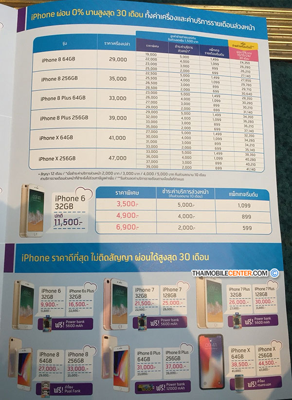 - 31,000 บาท ชำระค่าบริการล่วงหน้า 6,000 บาท พร้อมสมัครแพ็คเกจ 4G+ Fun Unlimited ตั้งแต่ 1,499 บาทขึ้นไป