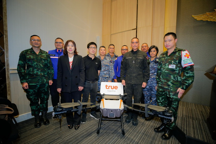 นายเอกราช ปัญจวีณิน หัวหน้าคณะผู้บริหารด้านดิจิทัล บมจ. ทรู คอร์ปอเรชั่น กล่าวว่า “หนึ่งในพันธกิจสำคัญของทรู คอร์ปอเรชั่น คือการนำศักยภาพด้านเทคโนโลยีดิจิทัลมาสร้างประโยชน์ให้แก่สังคม โดยเฉพาะในยามวิกฤต ซึ่งครั้งนี้ ได้นำโดรนพร้อมนักบินผู้เชี่ยวชาญเข้าร่วมเสริมภารกิจกู้ภัยและช่วยเหลือผู้ประสบภัย เพื่อให้การดำเนินงานเป็นไปอย่างมีประสิทธิภาพและสอดประสานกันทุกขั้นตอน ซึ่งฝูงโดรน ขนาดบรรจุ 25 ลิตร จำนวน 20 ลำนี้ มีความคล่องตัวสูง เหมาะสมต่อการลำเลียงสิ่งของจำเป็นและเข้าถึงพื้นที่ที่การสัญจรเป็นไปด้วยความยากลำบากในสถานการณ์อุทกภัยรุนแรงในพื้นที่ภาคใต้”