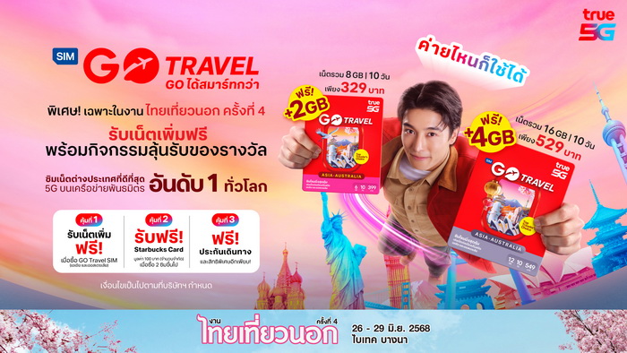 ทรู5G ส่ง “GO Travel SIM” ชวน “เที่ยววนไป” ใน “งานไทยเที่ยวนอก ครั้งที่ 4” จัดเต็ม รับเน็ตโรมมิ่งเพิ่มฟรี และกิจกรรมสุดเอ็กซ์คลูซีฟเฉพาะในงานเท่านั้น 26 – 29 มิ.ย. 68 นี้ ณ ไบเทค บางนา