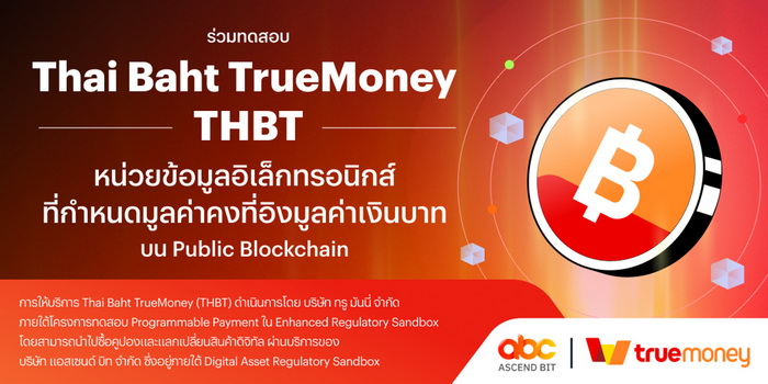 ทรูมันนี่ (TrueMoney) ผู้นำด้านเทคโนโลยีการเงินชั้นนำในภูมิภาคเอเชียตะวันออกเฉียงใต้ ประกาศเปิดตัว Thai Baht TrueMoney (THBT) หน่วยข้อมูลอิเล็กทรอนิกส์ที่มูลค่าคงที่เท่ากับเงินบาทในอัตรา 1:1 บน Public Blockchain พร้อมเปิดให้ทดลองใช้งานแล้วในวงจำกัด ภายใต้โครงการทดสอบ Programmable Payment ใน Enhanced Regulatory Sandbox