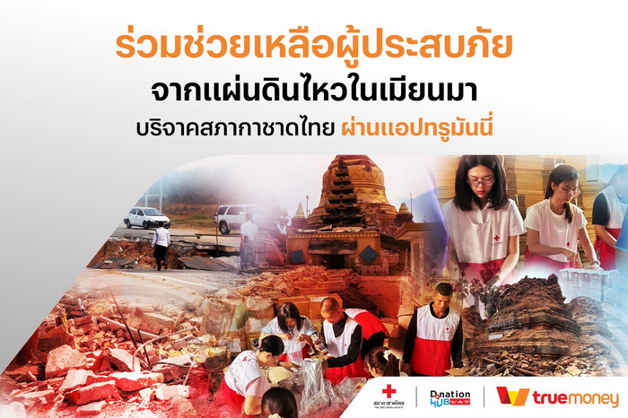 ทรูมันนี่ ประเทศไทย เมียนมา และกัมพูชา เปิดช่องทางบริจาคเงินช่วยเหลือ ผู้ประสบภัยแผ่นดินไหว พร้อมเชิญชวนผู้ใช้ร่วมบริจาคผ่านทรูมันนี่