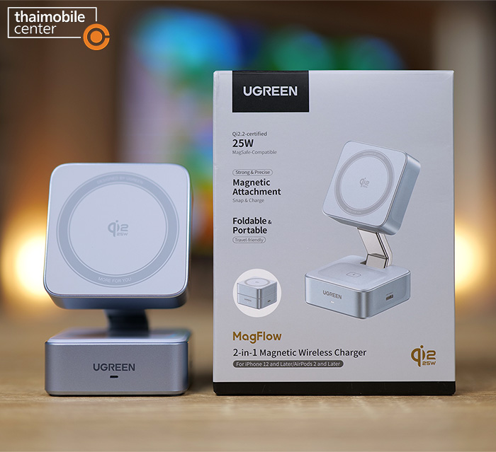 - UGREEN MagFlow 2-in-1 Magnetic Wireless Charger 25W ราคา 1,490 บาท