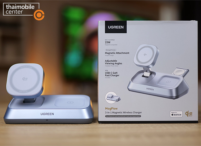 - UGREEN MagFlow 3-in-1 Magnetic Wireless Desktop Charger 25W ราคา 4,990 บาท