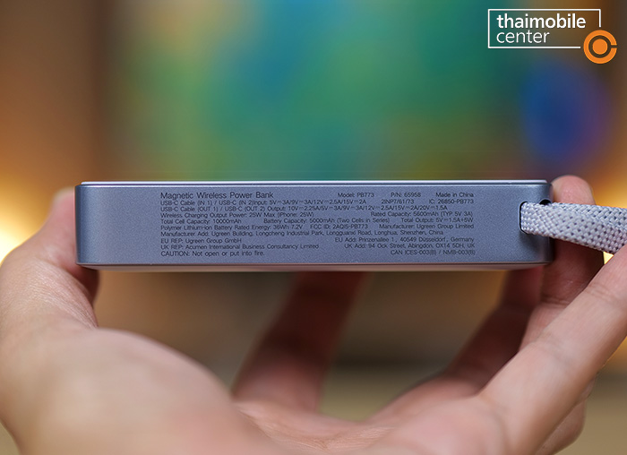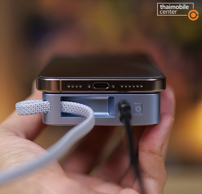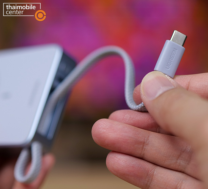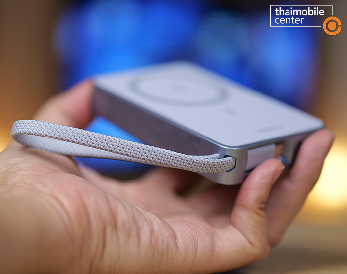 ความพิเศษอีกอย่างของสาย USB-C แบบถักที่ติดมากับพาวเวอร์แบงก์นี้ก็คือสามารถใช้เป็นสายคล้องข้อมือสำหรับการพกพาได้ด้วย ซึ่งก็บ่งบอกได้เป็นอย่างดีว่าสายนี้เป็นสายที่มีความแข็งแรงทนทานสูง