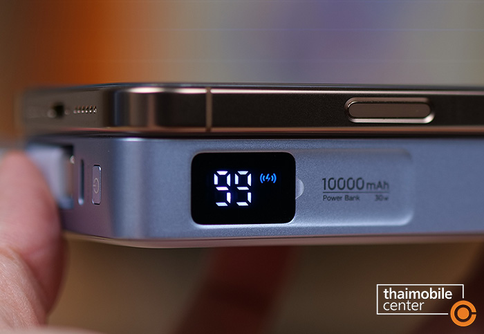 ด้านความเร็วในการชาร์จแบบไร้สาย ด้วยกำลังไฟสูงสุดที่ 25W ตามมาตรฐาน Qi2 25W กับการจัดวางตำแหน่งของแม่เหล็กที่แม่นยำ โดยหากเป็นการชาร์จ iPhone 16 Pro Max ก็จะสามารถชาร์จแบตเตอรี่ได้ 50% ภายในเวลาประมาณ 30 นาที เช่นเดียวกับรุ่นที่เป็นพาวเวอร์แบงก์
