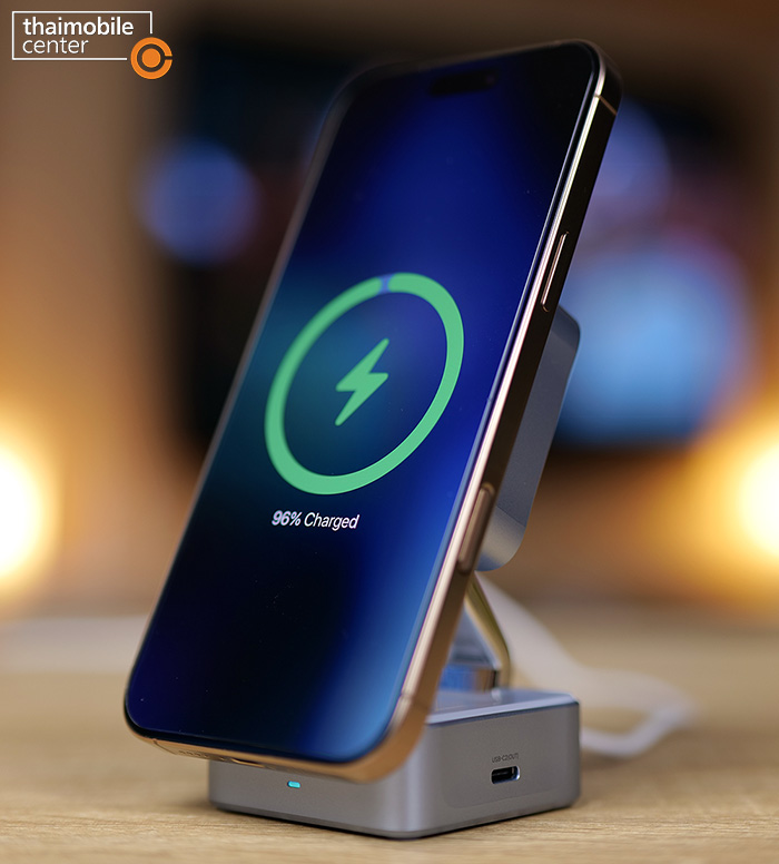 เรื่องความเร็วในการชาร์จแบบไร้สายนั้นแน่นอนว่าด้วยการรองรับมาตรฐาน Qi2 25W เหมือนกับแท่นชาร์จ 2 รุ่นแรก กำลังไฟ และระยะเวลาในการชาร์จของแท่นชาร์จไร้สายแม่เหล็กนั้นก็จะเท่ากัน นั่นคือสามารถจ่ายไฟด้วยกำลังไฟสูงสุดที่ 25W