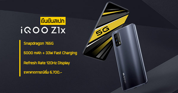 iQOO Z1x 5G ยืนยันสเปกก่อนเปิดตัวจริงพรุ่งนี้ กับชิป Snapdragon 765G จับคู่ RAM 8GB พร้อมแบตอึด 5000 mAh + ชาร์จไว 33W และจอสุดลื่น 120Hz คาดเปิดราคาเริ่มที่ 6,700 บาท