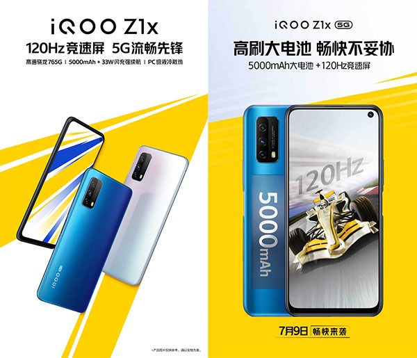 iQOO Z1x 5G ยืนยันทางการแล้วว่าจะมากับชิปเซ็ต Qualcomm Snapdragon 765G พร้อมกับแบตเตอรี่ความจุ 5000 mAh ที่รองรับเทคโนโลยีชาร์จเร็ว 33W Fast Charging และระบบระบายความร้อนเกรด PC รวมถึงหน้าจอแสดงผลที่มี Refresh Rate ระดับสูงสุดที่ 120Hz