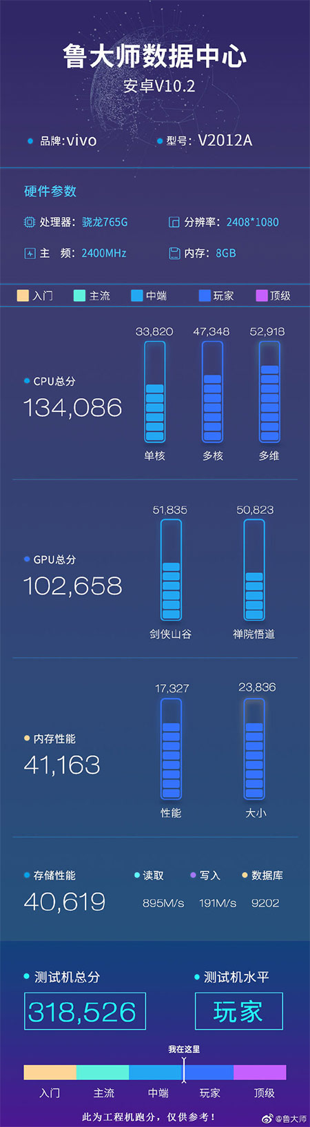 พร้อมกันทาง Master Lu ยังได้ออกมาให้ข้อมูลเพิ่มเติมว่า iQOO Z1x 5G จะมี RAM 8GB + ROM 256GB และรันอยู่บนระบบปฏิบัติการ Android 10 อีกทั้งยังได้ผลการทดสอบประสิทธิรวมที่ 318,526 คะแนน ซึ่งคาดกันว่าน่าจะเปิดราคาเริ่มต้นที่ 1,500 - 2,000 หยวน หรือประมาณ 6,700 - 8,900 บาท