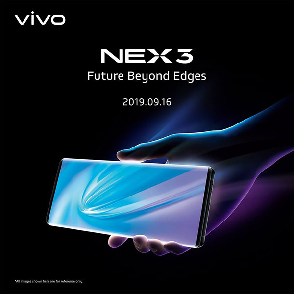 Vivo NEX 3 ยืนยันเปิดตัวในไทย 16 ก.ย. นี้ พร้อมเผยคลิปทีเซอร์จอขอบโค้ง Waterfall กล้องหน้า Pop-Up และกล้องหลัง 3 ตัว 64MP คาดมากับชิป Snapdragon 855+ จับคู่ RAM 12GB