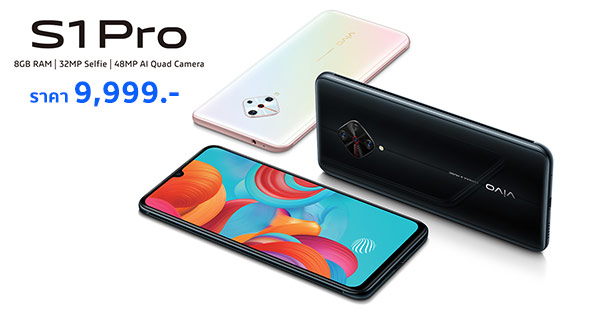 Vivo S1 Pro เปิดราคาในไทย 9,999 บาท ชูโรงกล้อง AI 4 ตัวดีไซน์ใหม่ พร้อมแบตอึดชาร์จไว 4500 mAh พลังชิป Snapdragon 665 จับคู่ RAM 8GB และสแกนนิ้วใต้จอ