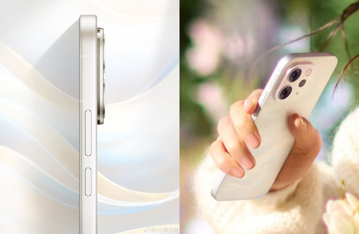ภาพแรกเผยให้เห็นด้านข้างของซีรีส์ vivo S50 มาพร้อมเฟรมโลหะเกรดอากาศยาน ส่วนอีกภาพแสดงดีไซน์โมดูลกล้องหลังทรงสี่เหลี่ยมมุมโค้ง ภายในจัดวางกล้องแบบสามเหลี่ยมคล้ายดีไซน์ iPhone