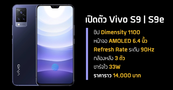 เปิดตัว Vivo S9 5G และ S9e ราคาเริ่มต้นราว 14,000 บาท มากับชิป Dimensity 1100, กล้องหน้าคู่ 44MP+8MP, แบต 4000mAh และชาร์จไว 33W
