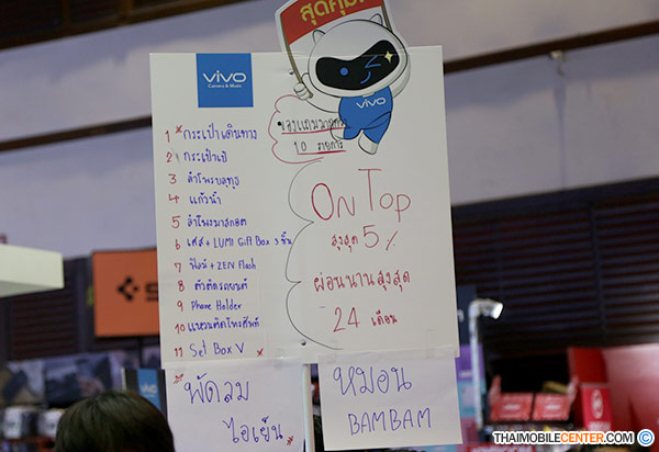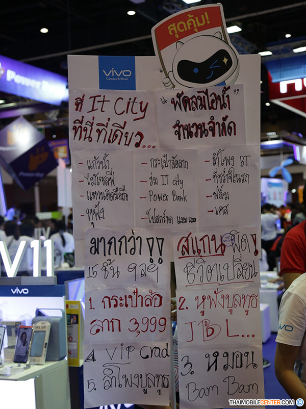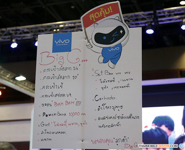 ในวันนี้ทางทีมงานจึงไม่พลาดที่จะเก็บรวบรวมข้อมูลโปรโมชั่นราคาพิเศษจากบูธ Vivo ภายในงาน TME 2018 ในครั้งนี้มาฝากกัน เพื่อเป็นแนวทางสำหรับท่านที่สนใจ และกำลังมองหาสมาร์ทโฟนรุ่นใหม่ ซึ่งจะมีรายละเอียดโปรโมชั่น และของแถมเป็นอย่างไร ไปชมพร้อมกันเลยค่ะ