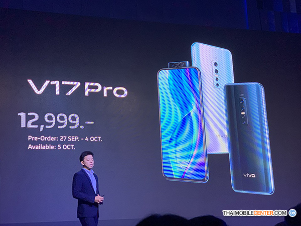 ล่าสุดนี้ทาง Vivo ประเทศไทย ได้ประกาศเปิดตัวสมาร์ทโฟน V-Series รุ่นใหม่ล่าสุดอย่าง Vivo V17 Pro อย่างเป็นทางการในประเทศไทยแล้ว โดยเปิดราคาวางจำหน่ายในบ้านเราเอาไว้ที่ 12,999 บาท สั่งจองได้ตั้งแต่วันนี้ - 4 ตุลาคม 2562