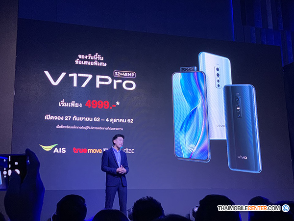 สำหรับ Vivo V17 Pro จะเริ่มวางจำหน่ายในประเทศไทยอย่างเป็นทางการตั้งแต่วันี่ 5 ตุลาคมนี้เป็นต้นไป พร้อมโปรโมชันพิเศษจากผู้ให้บริการด้านเครือข่ายด้วยสิทธิในการซื้อ Vivo V17 Pro ราคาพิเศษเพียง 4,999 บาท เมื่อสมัครแพ็กเกจที่กำหนด สำหรับใครที่สนใจก็สามารถแวะเวียนไปทดลองใช้งาน รวมถึงจับจองเป็นเจ้าของ Vivo V17 Pro ได้ตามวัน และเวลาดังกล่าวนะครับ