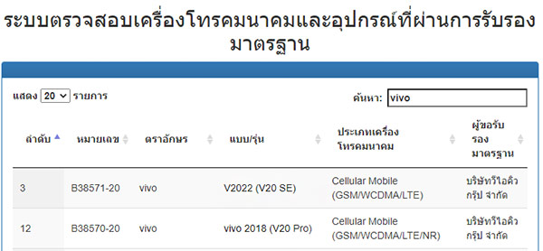 หลังจากการเปิดตัว Vivo V19 ไปเมื่อเดือนพฤษภาคมที่ผ่านมา ล่าสุดก็มีข่าวคราวเกี่ยวกับรุ่นต่อยอดอย่าง Vivo V20 ออกมาแล้ว โดยในเบื้องต้นมีการพบรายชื่อทั้งหมด 3 รุ่น ได้แก่ Vivo V20, V20 Pro และ V20 SE ซึ่งในรุ่น V20 Pro และ V20 SE ได้ผ่านการรับรองจากทาง กสทช. ของบ้านเราแล้วด้วย