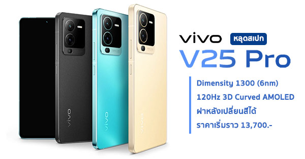 vivo V25 Pro หลุดสเปก จ่ออัปเกรดด้วยชิป Dimensity 1300 พร้อมจอโค้ง 120Hz AMOLED และฝาหลังเปลี่ยนสีได้