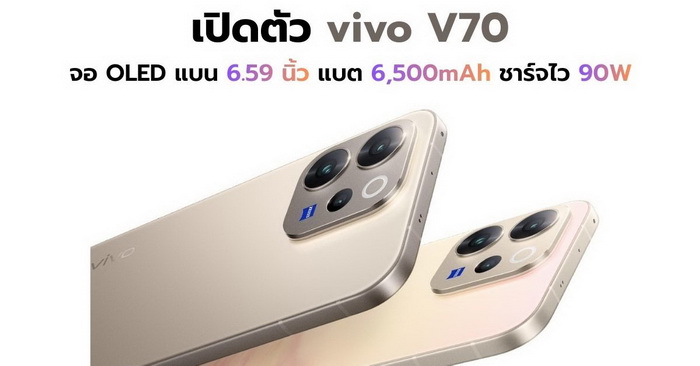 เปิดตัว vivo V70 จอ OLED แบน 6.59 นิ้ว สว่าง 1,800 nits แบต 6,500mAh ชาร์จไว 90W
