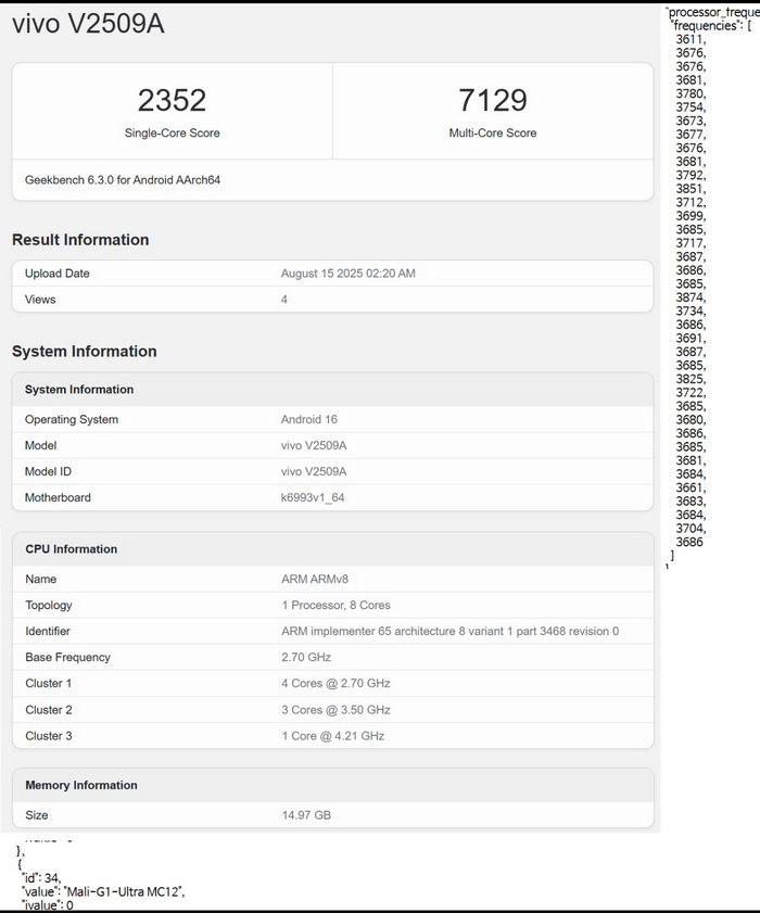 ผลทดสอบดังกล่าวยืนยันว่า vivo X300 จะมาพร้อม MediaTek Dimensity 9500 ชิปเซ็ตเรือธงรุ่นใหม่ที่คาดว่าจะเปิดตัวในเดือนกันยายน โดยเครื่องต้นแบบ (โมเดลหมายเลข V2509A) มาพร้อม RAM 16GB และทำงานบน Android 16