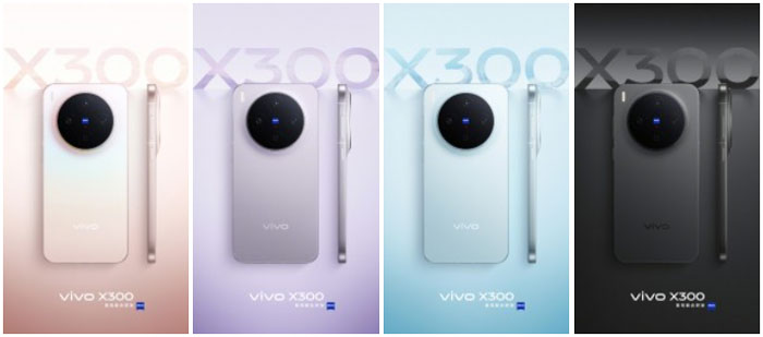 ทีเซอร์ทางการยืนยันแล้วว่า vivo X300 จะมีให้เลือกสี Lucky Color, Cozy Purple, Free Blue และ Pure Black ส่วน vivo X300 Pro จะมาพร้อมสี Wilderness Brown, Simple White, Free Blue และ Pure Black จุดเด่นด้านการออกแบบยังรวมถึงการกันน้ำกันฝุ่นมาตรฐาน IP68 + IP69 และตัวเครื่องบางเพียง 7.95 มม. (7.99 มม. ในรุ่น Pro) ด้านหน้าจอ vivo X300 จะใช้จอ LTPO OLED ขนาด 6.31 นิ้ว ความละเอียด 1.5K รีเฟรชเรต 120Hz ขณะที่รุ่น vivo X300 Pro จะใช้จอใหญ่ขึ้นเป็น 6.78 นิ้ว ทั้งคู่มาพร้อมหน้าจอ BOE Q10 Plus OLED รุ่นใหม่ที่รองรับความสว่างต่ำสุด 1 nit