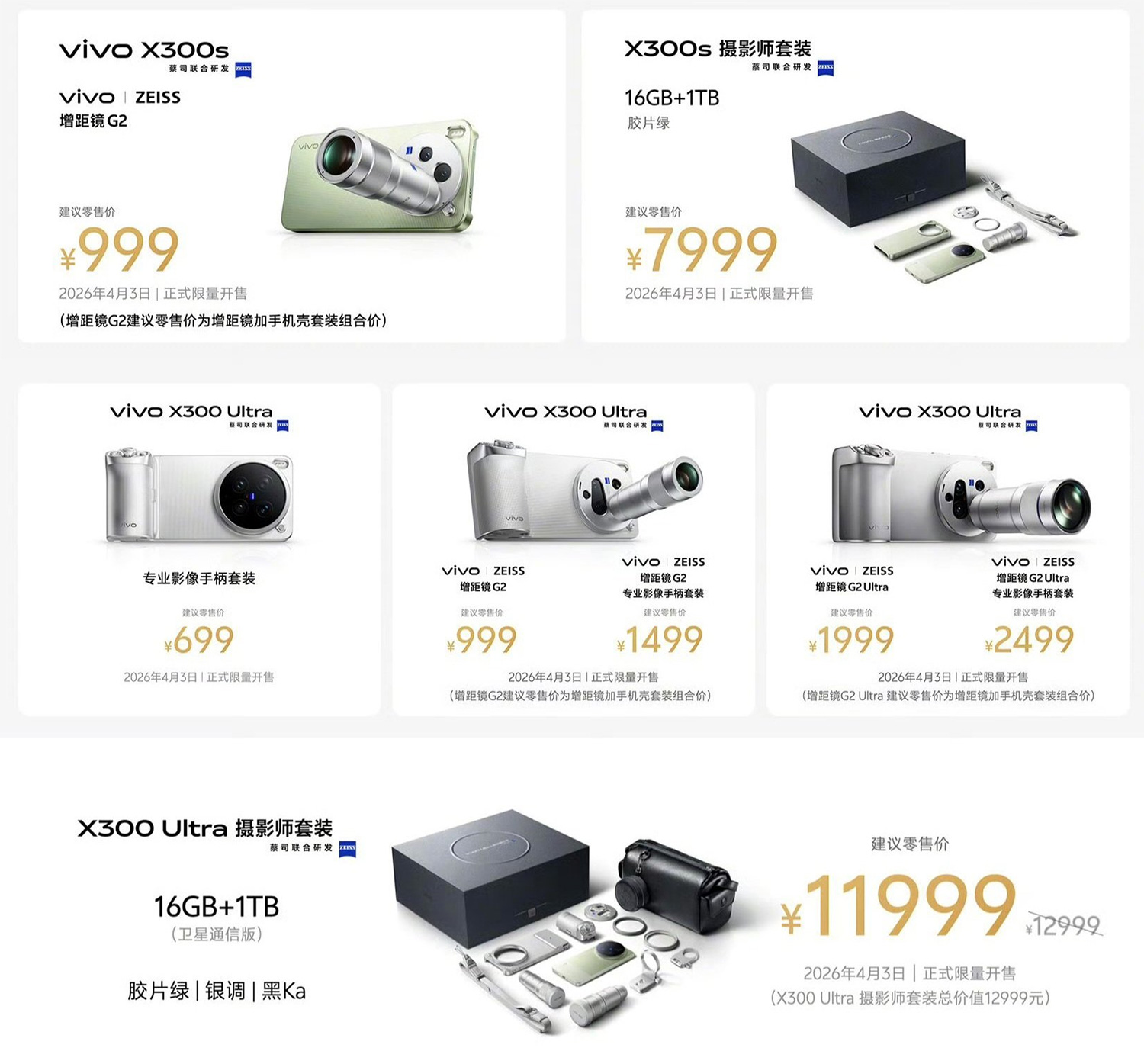 ในส่วนของเลนส์ vivo ยังเปิดตัวเทเลคอนเวอร์เตอร์ใหม่ 2 รุ่นสำหรับใช้งานร่วมกับเลนส์เทเลโฟโต้ 200MP ของ X300 Ultra ได้แก่ เทเลคอนเวอร์เตอร์ 400 มม. ซูม 17.4x ที่ใช้ชื่อว่า “Cannon 400” และรุ่นใหม่ขนาดเล็กกว่าอย่าง 200 มม. ซูม 8.7x ในชื่อ “Lipstick 200” นอกจากนี้ยังมีชุดถ่ายภาพใหม่ชื่อ vivo Imaging Grip Kit ด้วย