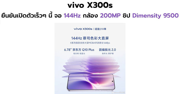 vivo X300s ยืนยันเปิดตัวเร็ว ๆ นี้ สมาร์ตโฟนจอ 144Hz กล้อง 200MP ลุ้นใช้ชิป Dimensity 9500