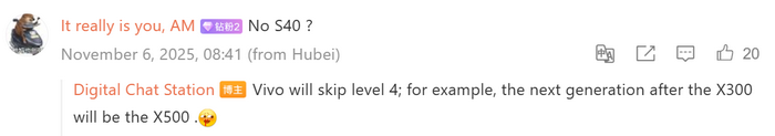 จากข้อมูลของ Digital Chat Station แหล่งข่าวหลุดชื่อดัง ระบุว่ารุ่นถัดไปต่อจาก vivo X300 Series จะใช้ชื่อว่า vivo X500 Series ซึ่งหมายความว่าตระกูลใหม่นี้อาจประกอบด้วย vivo X500, vivo X500 Pro, และ vivo X500 Ultra ซึ่งจะมาแทนที่ vivo X300, vivo X300 Pro, และ vivo X300 Ultra ตามลำดับ