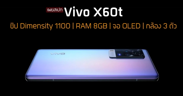 Vivo X60t เรือธงรุ่นเล็ก จ่อมาพร้อมชิป Dimensity 1100, แบต 4220mAh และกล้อง 48MP คาดราคาราว 17,600 บาท