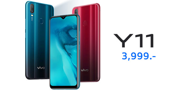 ล่าสุดนี้ทาง Vivo ประเทศไทย ได้เปิดตัวสมาร์ทโฟนน้องใหม่จากตระกูล Y-Series ในชื่อ Vivo Y11 กับราคาทางการที่ 3,999 บาท โดยมีจุดเด่นที่แบตเตอรี่ความจุ 5000 mAh บนดีไซน์จอไร้ขอบแบบ Halo FullView Display ขนาด 6.35 นิ้ว และมีตัวเครื่องเงางามแบบ Mirror Finish พร้อมการไล่เฉดสีที่สามารถสะท้อนเล่นกับแสงในมุมต่างๆ รวมถึงมีกล้องคู่ (AI Dual Camera) ที่ด้านหลัง