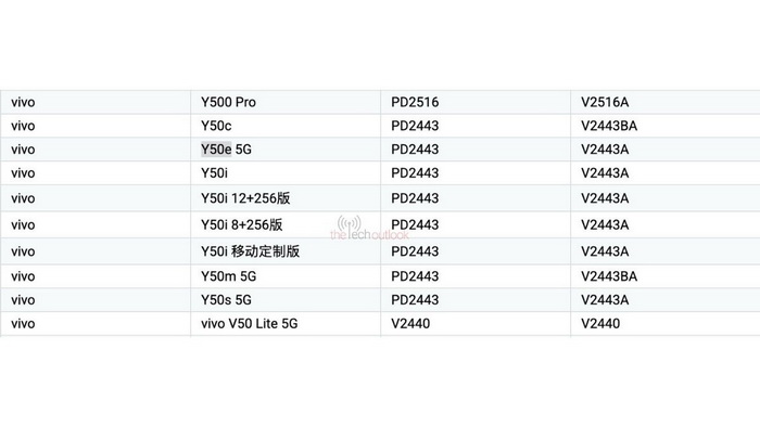 รายงานระบุว่า vivo Y50e และ vivo Y50s มีแนวโน้มจะเป็นรุ่นย่อย/รุ่นปรับเล็กน้อยจาก vivo Y50 ที่วางจำหน่ายอยู่แล้ว เช่นเดียวกับ vivo Y50i และ vivo Y50m ทั้งนี้ยังไม่ชัดเจนว่าทำไม vivo ถึงเลือกใช้การตั้งชื่อหลายแบบ และเปิดตัวรุ่นที่คล้ายกันจำนวนมาก โดยตัวเลือกในตระกูล Y50 หลายรุ่นยังใช้หมายเลขโมเดลเดียวกัน ซึ่งสะท้อนว่ามีความใกล้เคียงกันมาก
