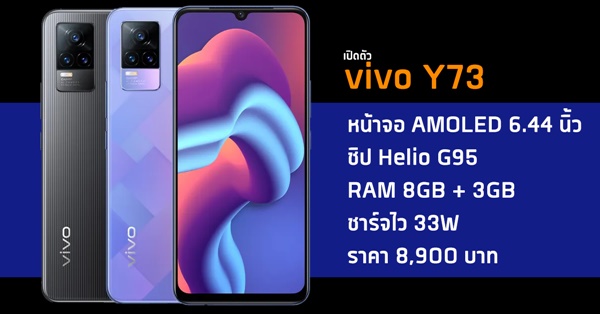 เปิดตัว vivo Y73 ชูจุดเด่นจอ AMOLED, ชิปซีรีส์เกมมิ่ง Helio G95, กล้อง 64MP และชาร์จไว 33W ในราคาราว 8,900 บาท