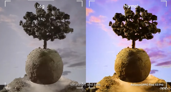 ตัวอย่างภาพจากไฟล์ LOG vs การถ่ายวิดีโอแบบธรรมดา ซึ่งจะเห็นว่าไฟล์ LOG จะมีสีที่ตุ่น ๆ ไม่มีการปรับแต่งสีสันเพิ่มเติมจากซอฟท์แวร์ ทำให้เหมาะกับการนำไปเกรดสี หรือปรับแต่งสีให้ตรงใจได้อย่างสะดวก