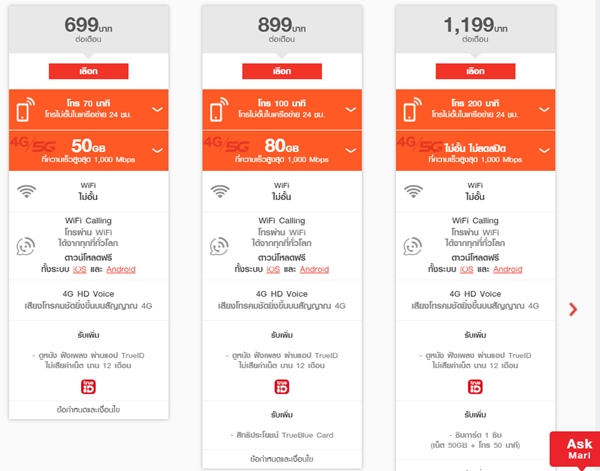 แพ็กเกจอินเทอร์เน็ต 5G แบบรายเดือนที่สามารถใช้งานแบบไม่จำกัดปริมาณ หรือ Unlimited ในปัจจุบันถือว่าค่อนข้างสูงพอสมควร โดยค่าแพ็กเกจ 5G Unlimited ในประเทศไทย เริ่มต้นที่ 1,199 บาท และสูงสุดที่ 1,999 บาท (ไม่รวม VAT 7%) สำหรับค่าย AIS และ TrueMove H ส่วนแพ็กเกจอินเทอร์เน็ตรายเดือนที่สามารถใช้ 5G ได้ จะมีราคาเริ่มต้นอยู่ที่ 699 บาท แต่จะจำกัดปริมาณอินเทอร์เน็ตอยู่ที่ 50GB เท่านั้น ซึ่งหมายความว่าหากคุณเป็นคนที่ต้องการใช้อินเทอร์เน็ต 5G ในปริมาณที่มากเป็นพิเศษ ก็จำเป็นที่จะต้องจ่ายค่าแพ็กเกจรายเดือนที่สูงกว่าเดิม