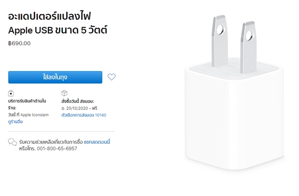 Apple ยังคงขายหัวชาร์จ 5W แบบเก่า (USB-A) แต่ตั้งราคาเท่ากับหัวชาร์จเร็ว 20W