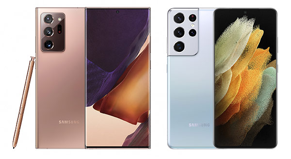 แต่ในปี 2021 ก็ถือเป็นจุดเปลี่ยนครั้งใหญ่ของมือถือทั้งสองซีรีส์นี้จากการเปิดตัวรุ่น Galaxy S21 Ultra 5G มือถือซีรีส์ S รุ่นแรกที่มาพร้อมความสามารถในการใช้งานร่วมกับปากกา S Pen (วางจำหน่ายแยก) และด้วยการแบ่งรุ่นย่อยที่มีตั้งแต่ Galaxy S21 / S21+ / S21 Ultra 5G ตามขนาดของตัวเครื่อง ได้แก่ 6.2 นิ้ว / 6.7 นิ้ว / 6.8 นิ้ว ตามลำดับ จะเห็นได้ว่าจุดเด่นที่เคยเป็นของ Galaxy Note เริ่มซึมเข้ามาที่ซีรีส์ S ในรุ่น Ultra จึงอาจกล่าวได้ว่ารุ่นท็อปของซีรีส์ S คือตัวแทนของซีรีส์ Note นั่นเอง