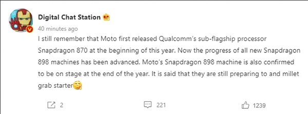 Digital Chat Station แหล่งข่าวหลุดชื่อดังจากจีน รายงานว่า Xiaomi จะเป็นเจ้าแรกที่ได้เปิดตัวสมาร์ทโฟนชิป Snapdragon 898 โดยคาดว่าสมาร์ทโฟนรุ่นดังกล่าวจะเป็นเรือธงรุ่นใหม่ Xiaomi 12 ขณะเดียวกัน Motorola ก็เตรียมเปิดตัวสมาร์ทโฟนชิป Snapdragon 898 เช่นกันในช่วงปลายปีนี้
