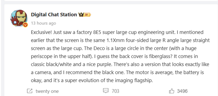 รายงานจาก IT Home ระบุว่า มีการพบอุปกรณ์ทดสอบที่ใช้ชิป Snapdragon 8 Elite Gen 5 รุ่นใหม่ ซึ่งถูกเปิดเผยโดยแหล่งข่าวชื่อดังอย่าง @Digital Chat Station สมาร์ตโฟนระดับเรือธงรุ่นนี้มาพร้อมหน้าจอแบบแบนขอบโค้ง R-angle ขนาดใหญ่ทั้ง 4 ด้าน แบบเดียวกับรุ่น “Pro” โดยดีไซน์ด้านหลังมาพร้อมโมดูลกล้องทรงกลมขนาดใหญ่ ที่ภายในบรรจุเลนส์ Periscope Telephoto ขนาดมหึมา ซึ่งบ่งชี้ได้ชัดว่านี่อาจเป็น Xiaomi 17 Ultra รุ่นที่มีข่าวลือมานาน