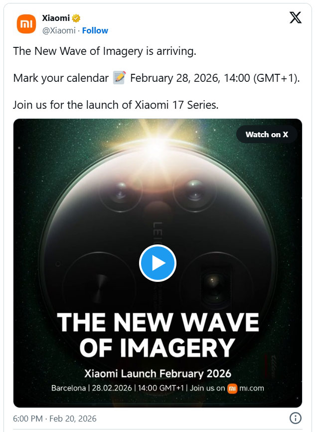 จากโพสต์บน X ที่ฝังไว้ด้านล่าง คำโปรยของงานคือ “The New Wave of Imagery is arriving” จึงค่อนข้างชัดเจนว่า Xiaomi 17 Ultra จะเปิดตัวระดับโลกในโอกาสนี้