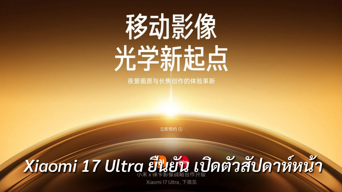 ก่อนหน้านี้มีข่าวลือว่า Xiaomi จะเปิดตัว Xiaomi 17 Ultra ในประเทศจีนวันที่ 26 ธันวาคม ล่าสุดข่าวลือนั้น “เป็นจริงบางส่วน” เพราะ Xiaomi ออกมายืนยันแล้วว่า Xiaomi 17 Ultra จะมา “สัปดาห์หน้า” แต่ยังไม่ได้ยืนยันวันที่แน่ชัด