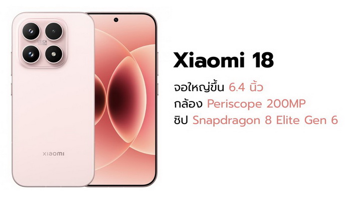 หลุดสเปก Xiaomi 18 จอใหญ่ขึ้น 6.4 นิ้ว ลุ้นกล้อง Periscope 200MP และชิป Snapdragon 8 Elite Gen 6