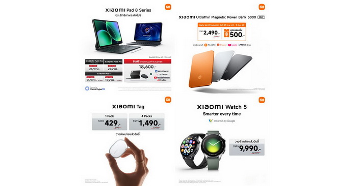 เสียวหมี่เปิดตัวไลน์ AIoT ใหม่ในไทย! Xiaomi Pad 8 Series, Xiaomi Watch 5, Xiaomi UltraThin Magnetic Power Bank 5000 15W, Xiaomi Tag, REDMI Buds 8 Pro